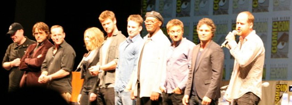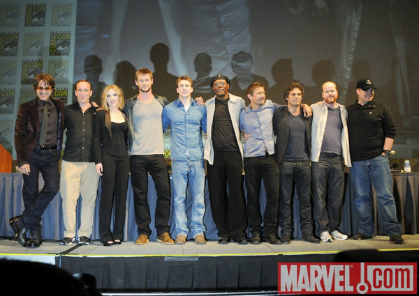 On a side note, one of the Thor producers was booed by the crowd when a fan mentioned Norton not being included in the movies. Here an official photo from Marvel.com of the whole gang together for the first time at SDCC.