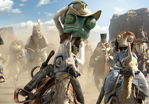 The film pays tribute to a wide variety of film (Fear and Loathing In Las Vegas and Man With No Name) without being as referential as a Shrek movie. These moments are more amusing than they are distracting and give the film a postmodern edge that blends neatly with the charm of the Old West. Despite some high points, the story is the films weakest link. For example, around the 1 hr 20min mark, Rango wanders back into the desert having been exposed as a fraud to his friends and love interest, Beans. He has an existential crisis and comes across the barely mentioned and not at all important Spirit of the West – a thinly veiled impression of Clint Eastwood. Though it’s somewhat amusing for adults to see a CGI Clint dispensing advice to Rango, it’s utterly unnecessary and drags out what should have been a more focused story for kids.