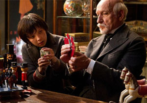 Orphaned Hugo (Asa Butterfield) is living inside the walls and clock towers of a large Paris train station, keeping the clocks in working order and avoiding the vigilant station inspector (Sacha Baron Cohen). In his sparse living quarters, Hugo spends his time desperately trying to repair an automaton his father had found before his death. Confident that the secrets of the strange machine will provide meaning for Hugo, he resolves to fix it with stolen parts from a toy booth within the station, run by Georges (Ben Kingsley) and his god-daughter Isabelle (Chloë Moretz).