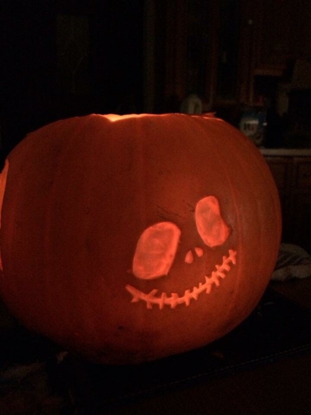 A four-sided Nightmare Before Christmas Halloween pumpkin! Don’t carve just one side and waste the rest of the space – plus, this way you get a design from wherever you look.